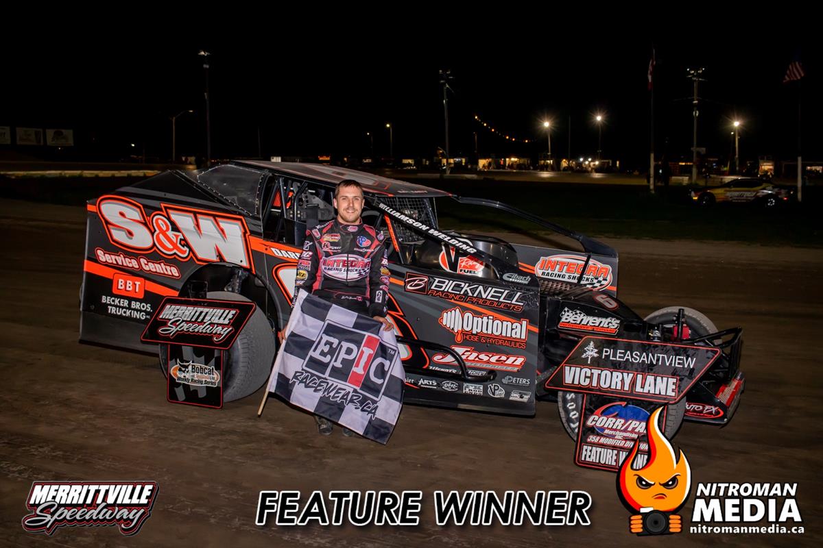 Daniel McKay and Noah Mamo led the field to green in the Right Choice Auto and Leisure Sportsman. Cautions ran rampant has drivers fought tooth and nail for every inch of racetrack at Merrittville Speedway. Rob Knapp led early, before Cody McPherson worked his way from 8th starting spot to take the lead and eventually the win. Three drivers who started outside the top 10 James Friesen, Brent Begolo and Taylor Vanderzanden, took advantage of the chaos in front of them to climb inside the top and finish 2nd, 3rd, and 4th respectively. Knapp rounded out the top 5.