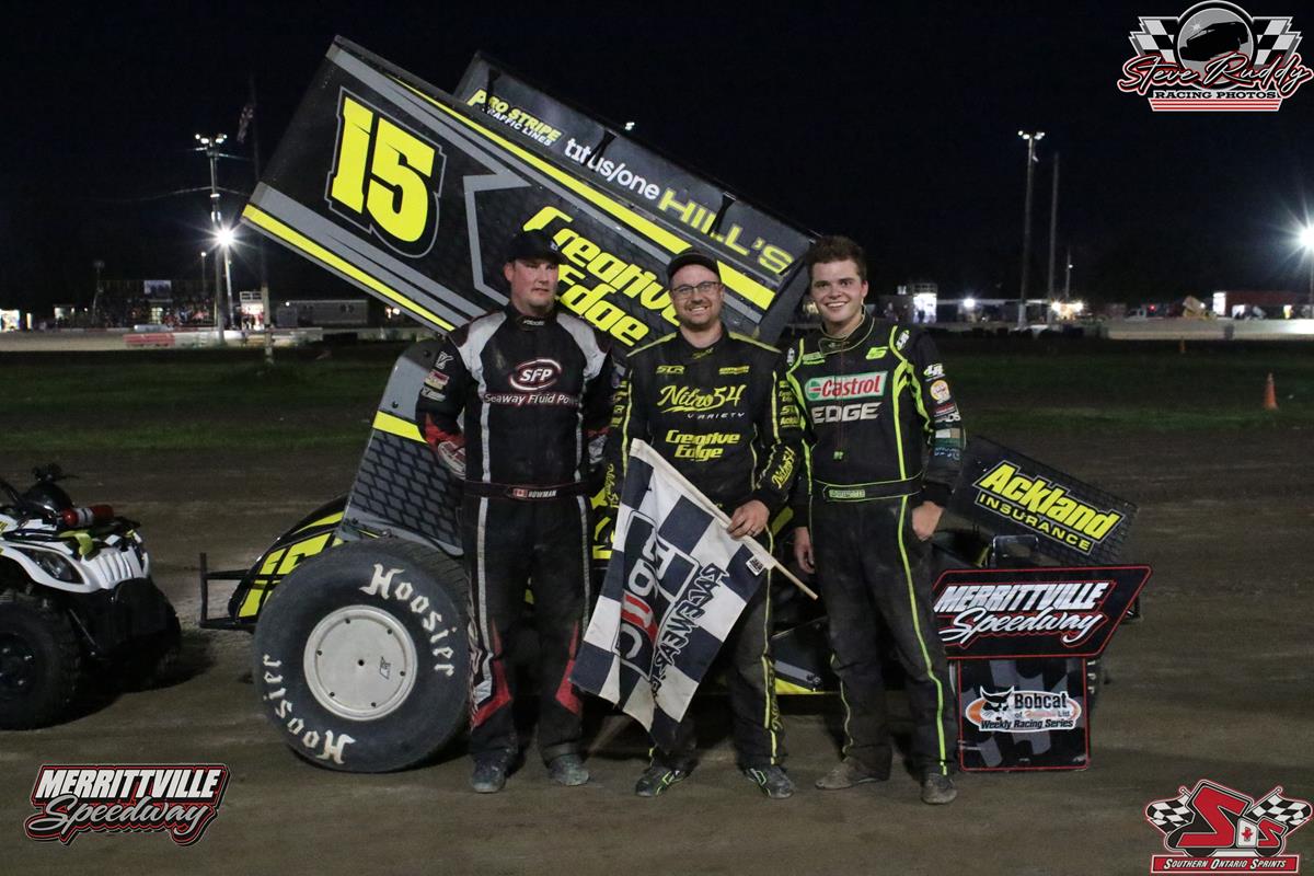 THOROLD, ONTARIO (June 24th, 2023) … Mother nature forced fans and teams to await until June 24th to 360 Sprint Cras at Merrittville Speedway when Cotton Inc presented the Gary Cunningham Memorial. The Southern Ontario Sprints proved to be more than worth the wait as Dunnville, Ontario’s Ryan Turner took home the win. Todd Gordon of St. Catharines, Ontario became the second different driver to win in the Corr/Pak Merchandising 358 Modifieds. Stevensville, Ontario’s Pete Reid returned to victory lane in the Hoosier Stocks. Thorold, Ontario native Brent Begolo kept his winning streak alive in the Rona Doidge Modified Lites and Alex Riley of St. Catharines, Ontario won the Vansickle Pet Valu/PV On the Lane 4 Cylinders.