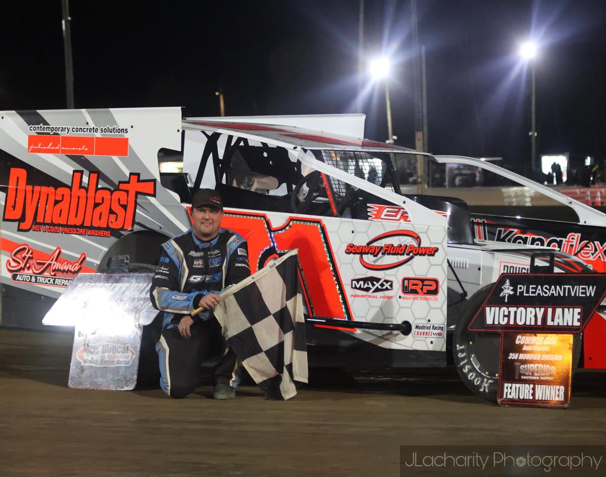 The Rona Doidge Modifed Lite feature began with Josh Sliter and Tyler Winger outfront, with Winger leading the first lap. On lap 4, Nick Sarantakos went for spin. The caution came out again on lap 7 when Cohen Corbett would spin off turn 4 and stall. Josh Sliter took the lead on the restart, however a mechanical failure would force Sliter off on lap 12, handing the lead back to Winger. On lap 18, Cohen Corbett spun in the exact same spot after recovering to 3rd, setting up a Green White Checkered. Winger would control the single file restart and hold off R.J. Pietz to pick up where he left 2024 with another win.