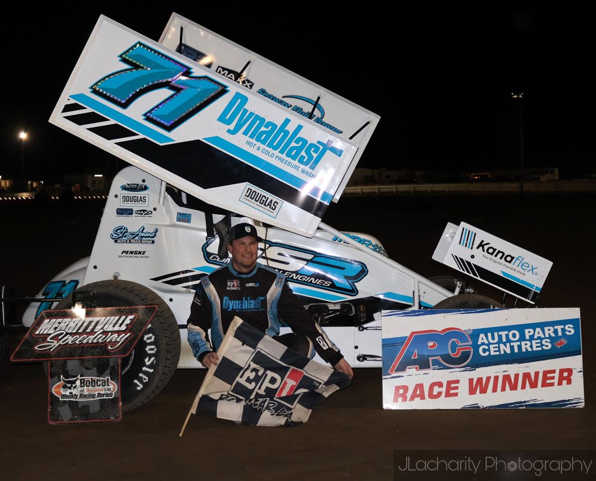 THOROLD, Ontario (April 26th, 2025) … The Spring Sizzler presented by Lococo’s at Merrittville Speedway was well attended by fans and drivers with 114 cars in the pits across the 5 divisions. The Southern Ontario Sprints kicked off 360 Sprint Car racing with their opening event, which was won by Mike Bowman of Stevensville, On. Justin Sharp of St. Catharines, On. took the win Commercial Auto Electric 358 Modified action. The Rona Doidge Modified Lite feature went to Port Colborne, On. native Josh Sliter. Jason Fontaine of Port Colborne, On. made it back-to-back trips to victory lane in the Hoosier Stocks and Ken Hair of Niagara Falls, On scored the win in the All Star Concrete 4 Cylinders.