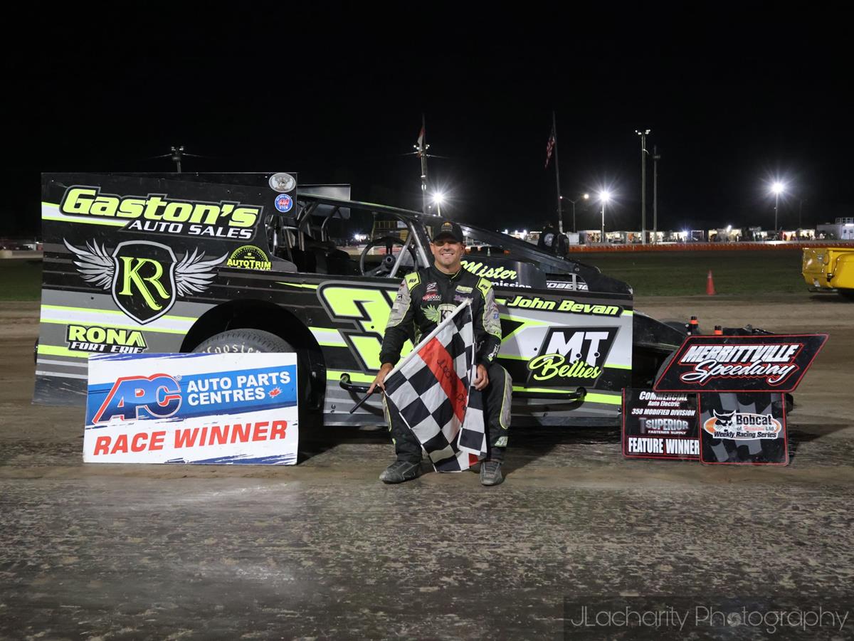 THOROLD, Ontario (August 2nd, 2025) … All Canadian Tribute Weekend at Merrittville Speedway kicked off with all five Bobcat of Hamilton Weekly Racing Series in action as Niagara Employment Help Centre presented the evening. In keeping with All Canadian tradition, all five divisions began with timed hot laps, with the top four finishers in each heat entering a redraw. Gary Lindberg of Ridgeway, ON dominated the Commercial Auto Electric 358 Modified feature. St. Catharines, ON’s Cody McPherson won the Semenuk’s ESSO/Baron Roofing DIRTcar Sportsman feature. The Rona Doidge Modified Lite feature went to Tyler Winger of Ridgeway, ON. The Hoosier Stock feature was won by Hagersville, ON native Dave Bailey while the All Star Concrete 4 Cylinder feature was won by Rob Goulding of Port Colborne, ON.
